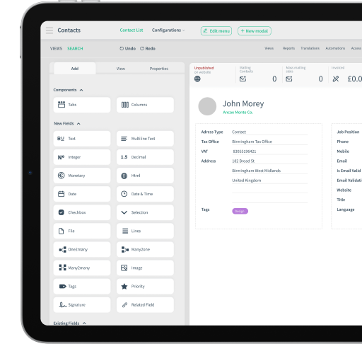Each business is unique, and therefore has unique needs and requirements. Add and remove custom fields to any of your screens to meet your needs and requirements.